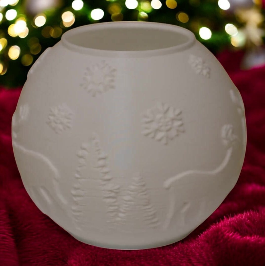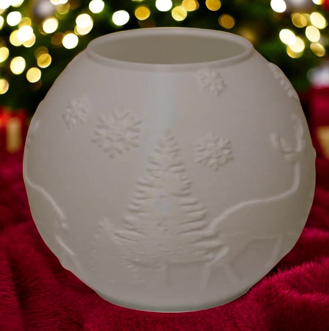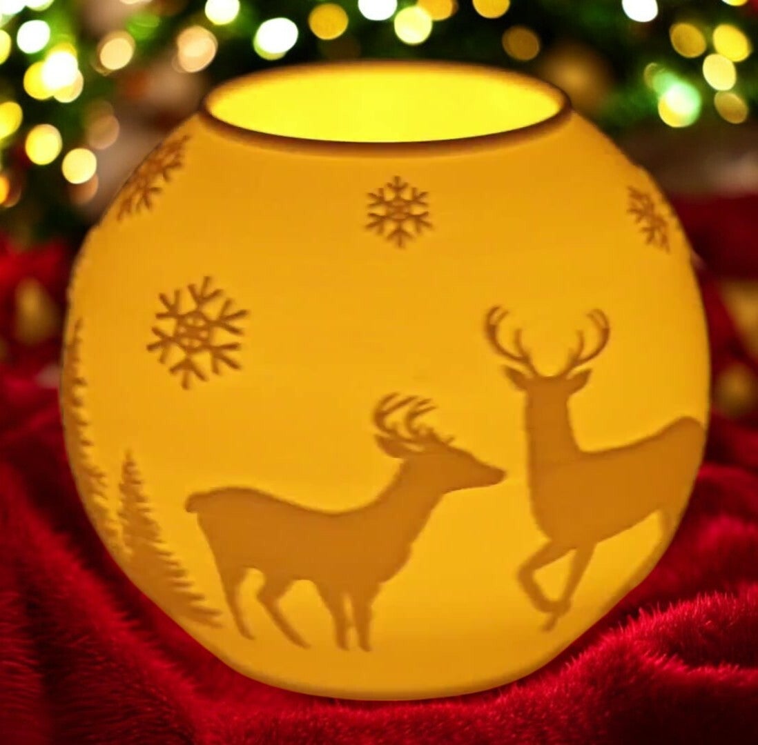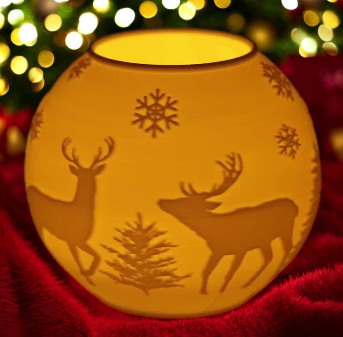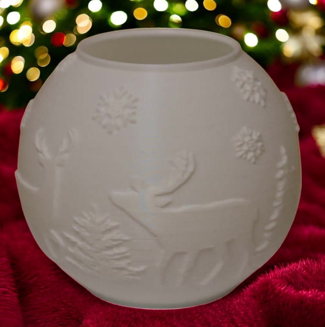 Teelichthalter Kugelform im Weihnachtsdesign - Schneeflocken-Bäume-Rentiere v1
