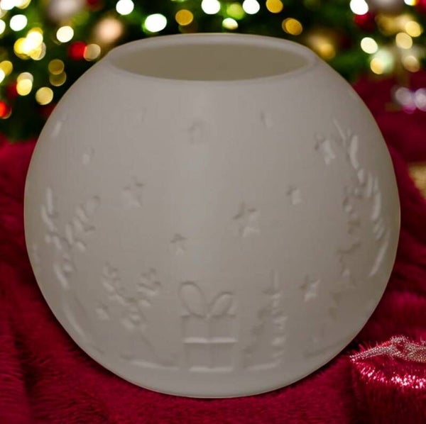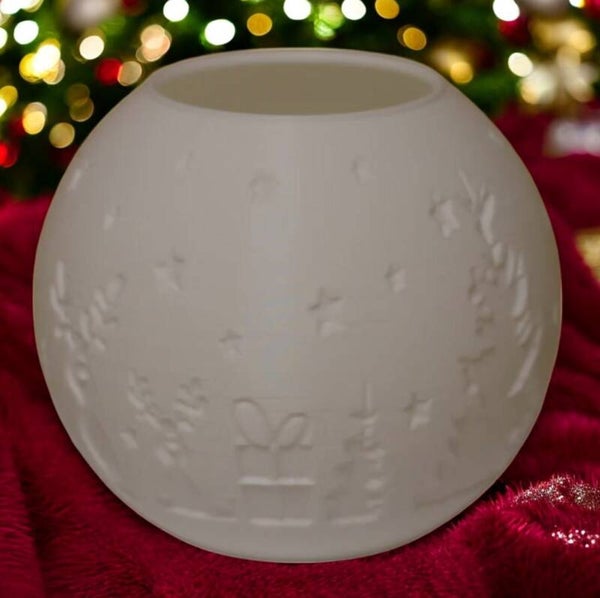 Teelichthalter Kugelform im Weihnachtsdesign - Rentiere-Bäume-Sterne-Geschenke v2