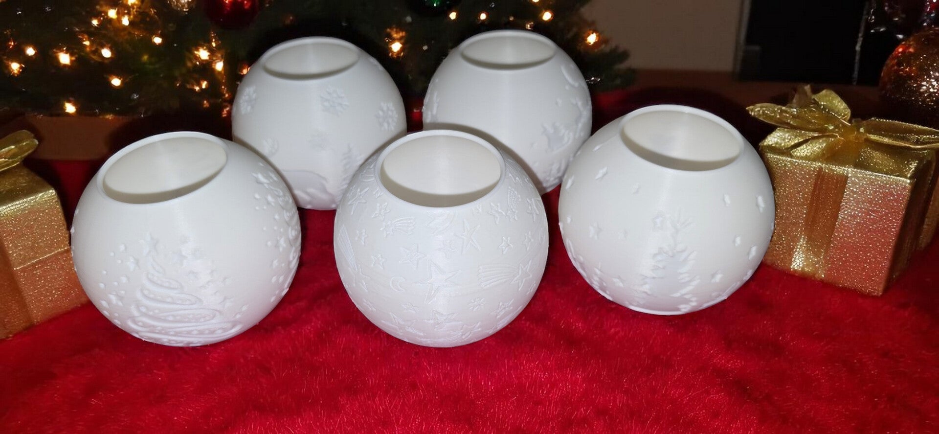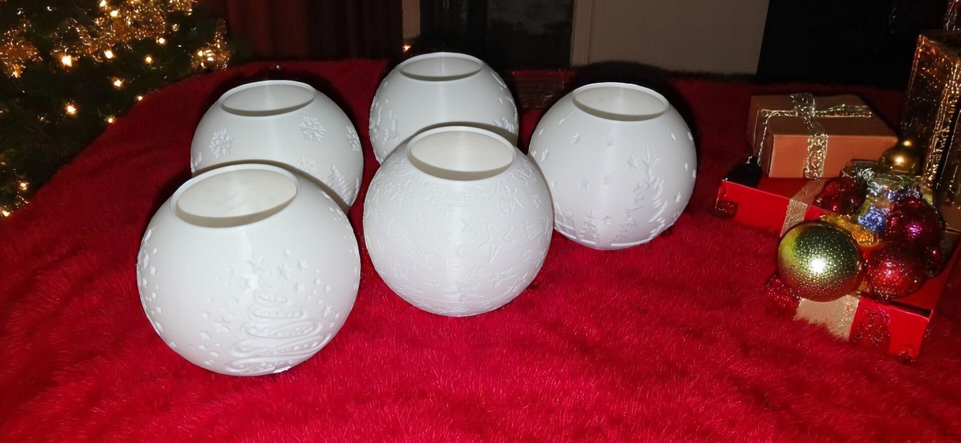 Teelichthalter Kugelform im Weihnachtsdesign Set 5er v1