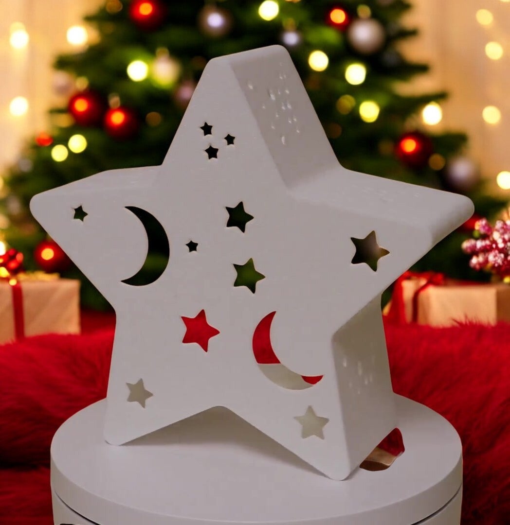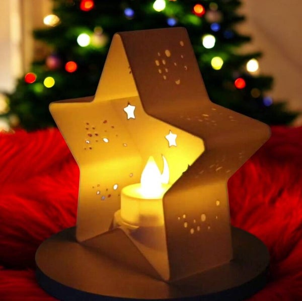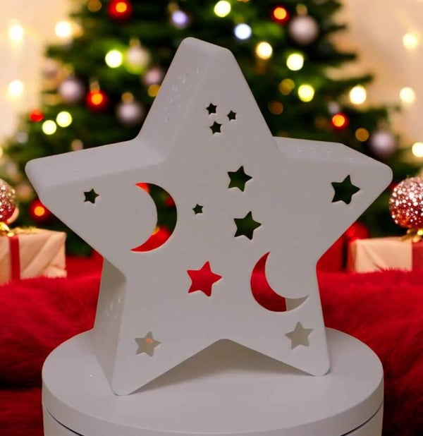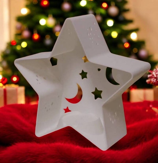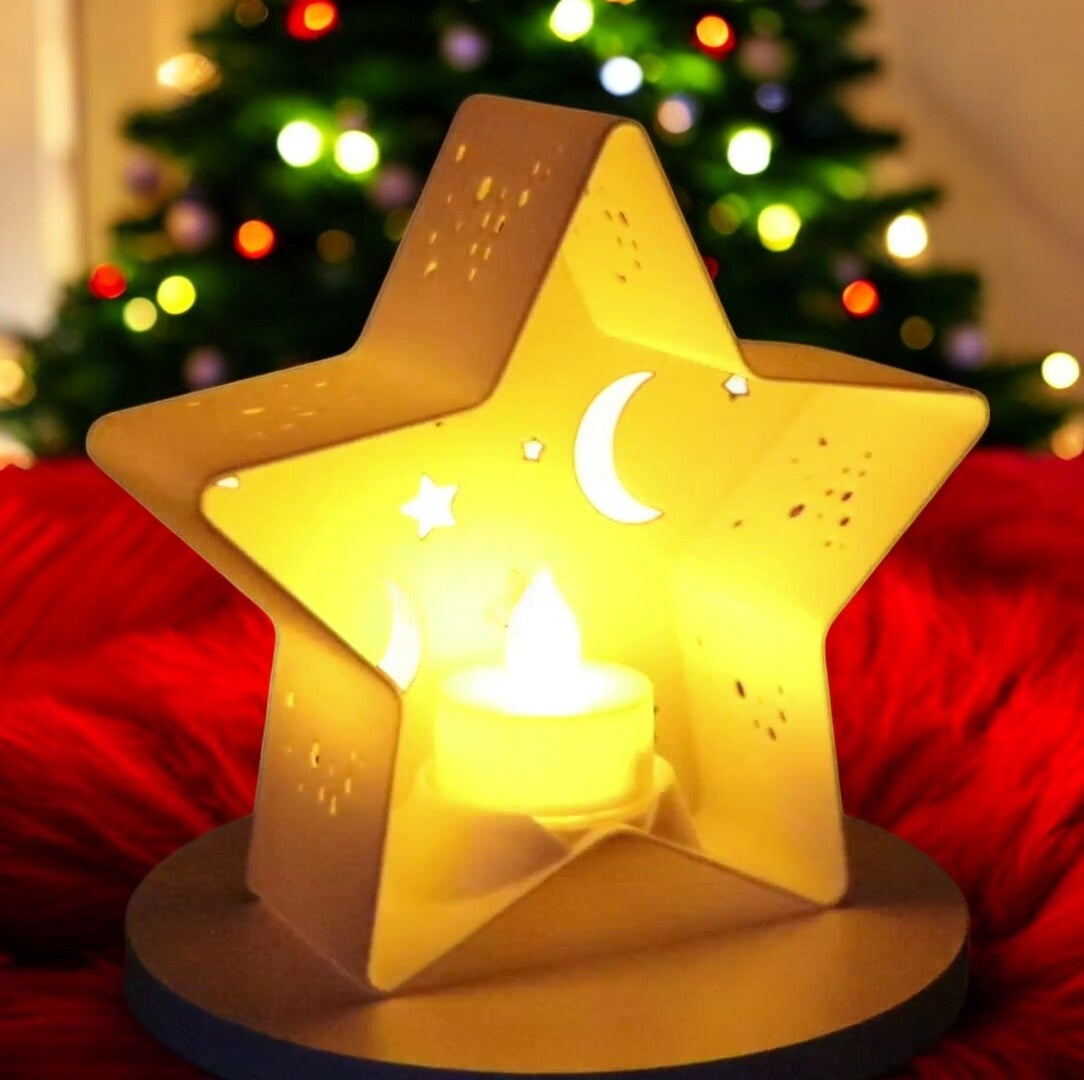 Teelichthalter Sternform im Weihnachtsdesign - Mond-Sterne