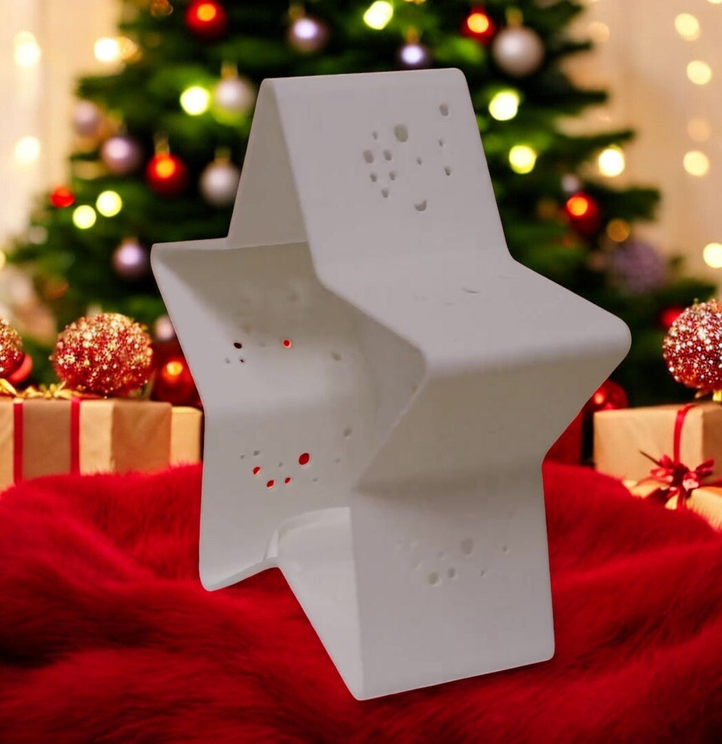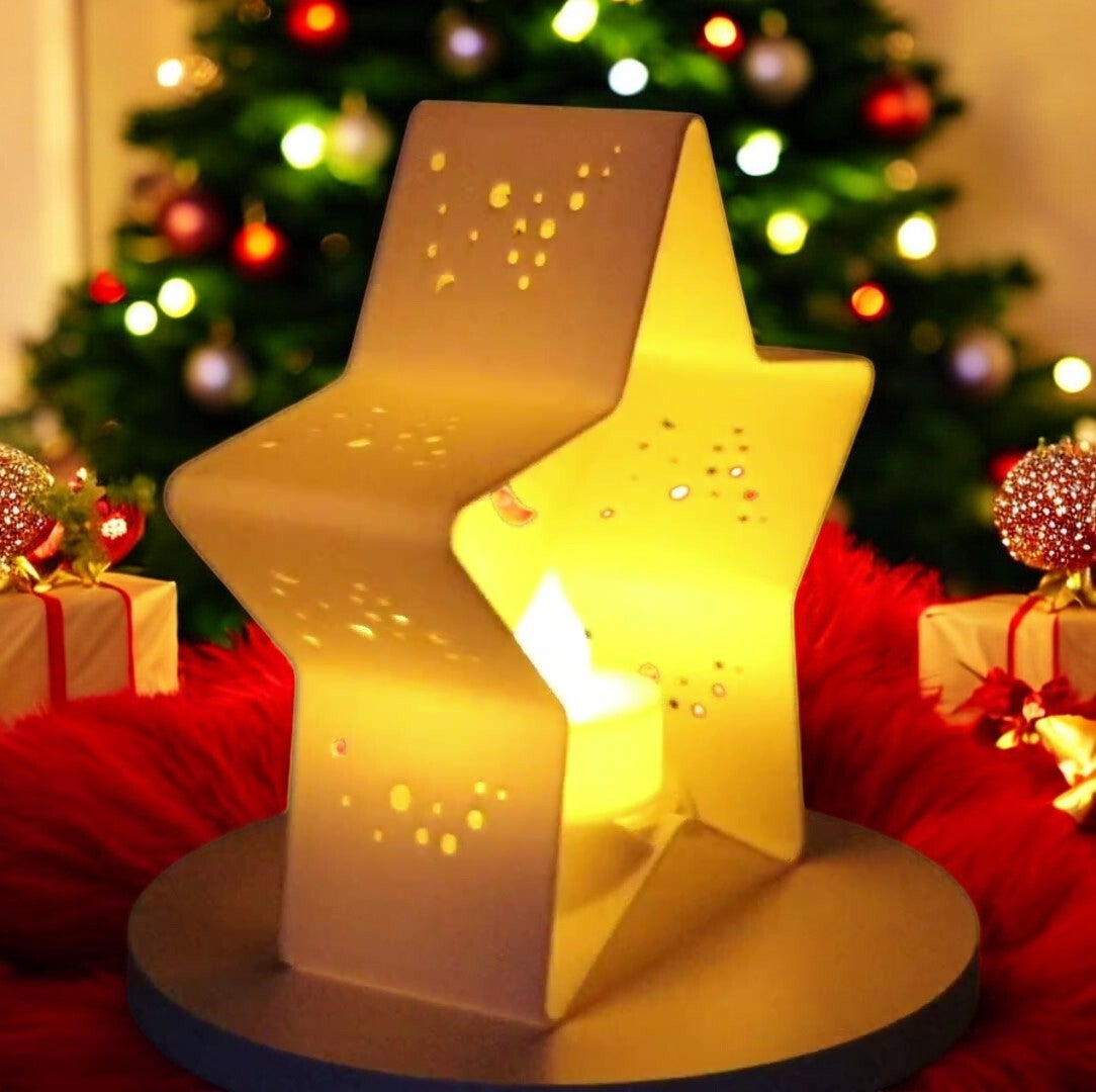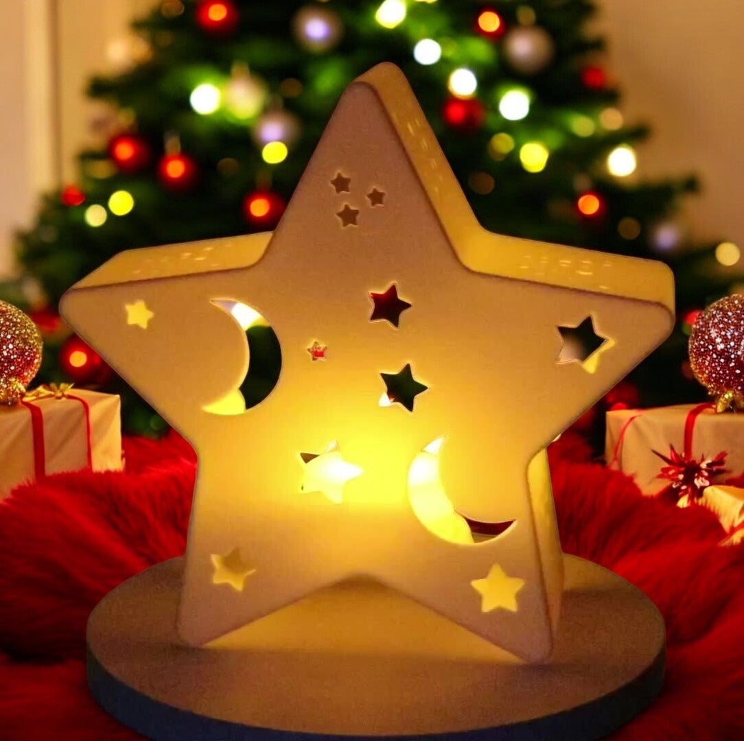 Teelichthalter Sternform im Weihnachtsdesign - Mond-Sterne