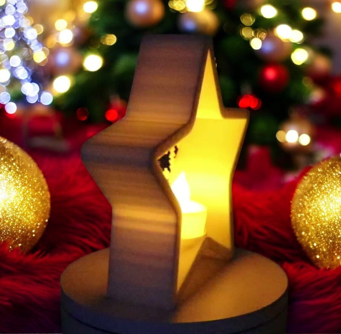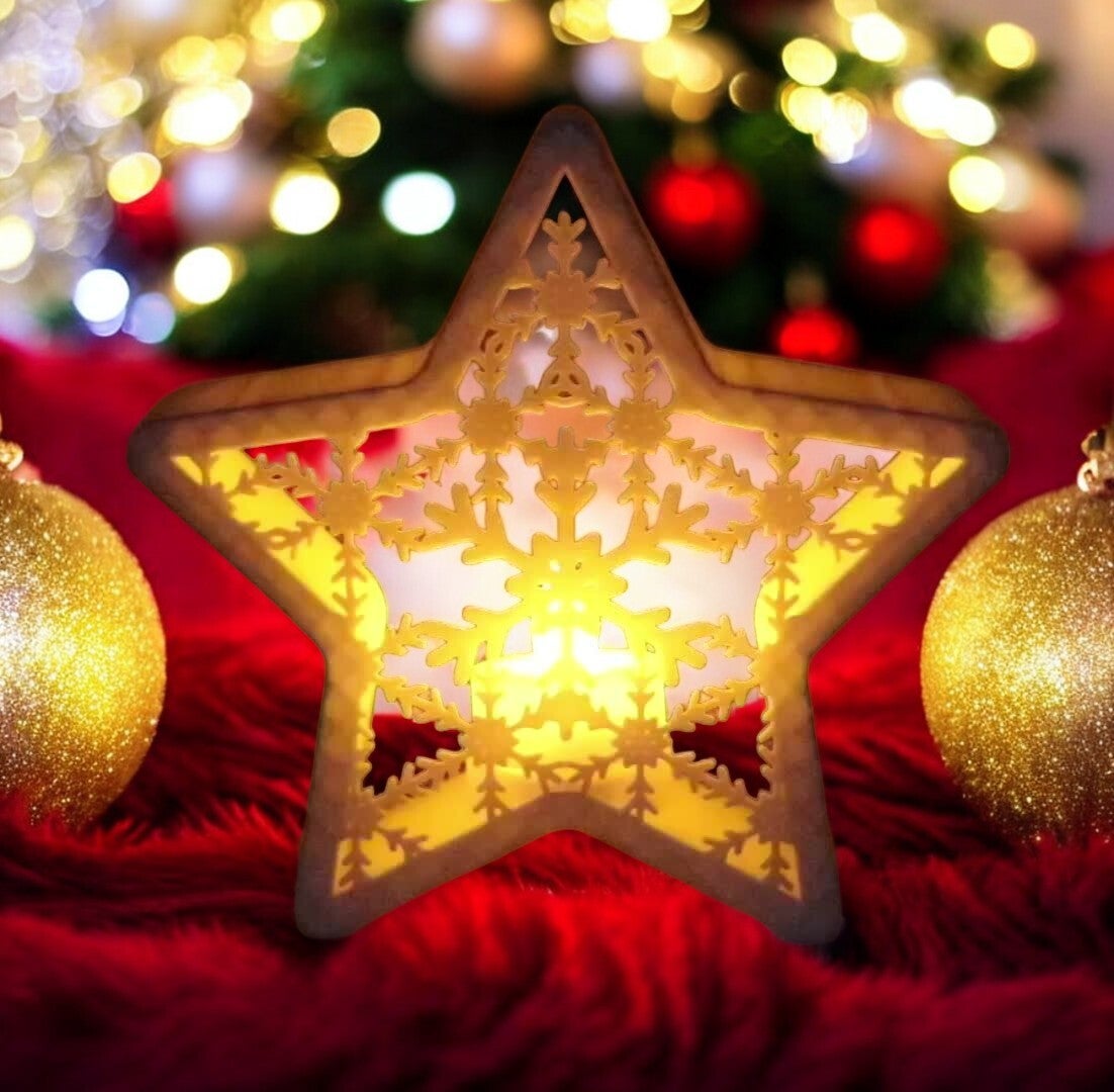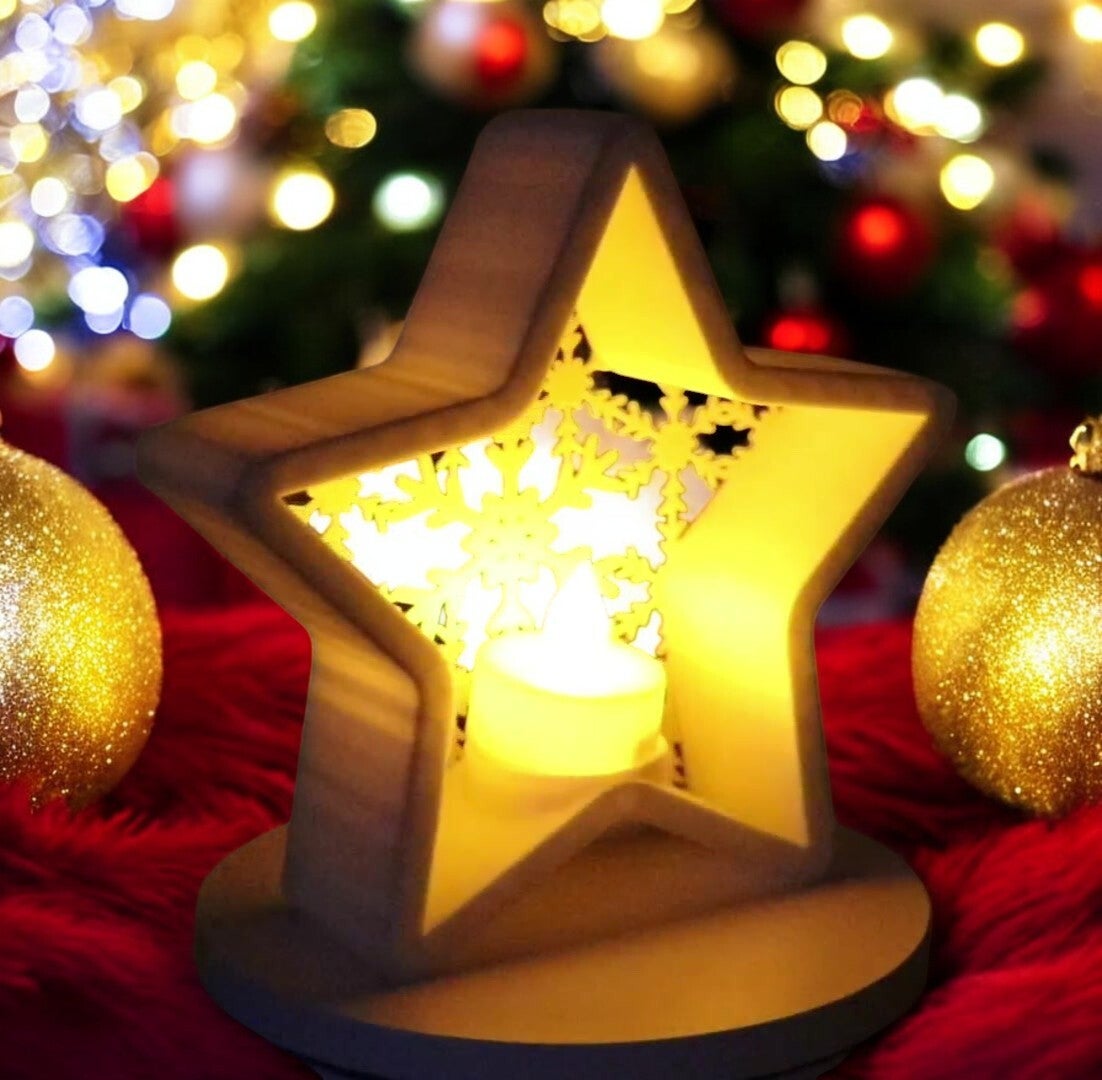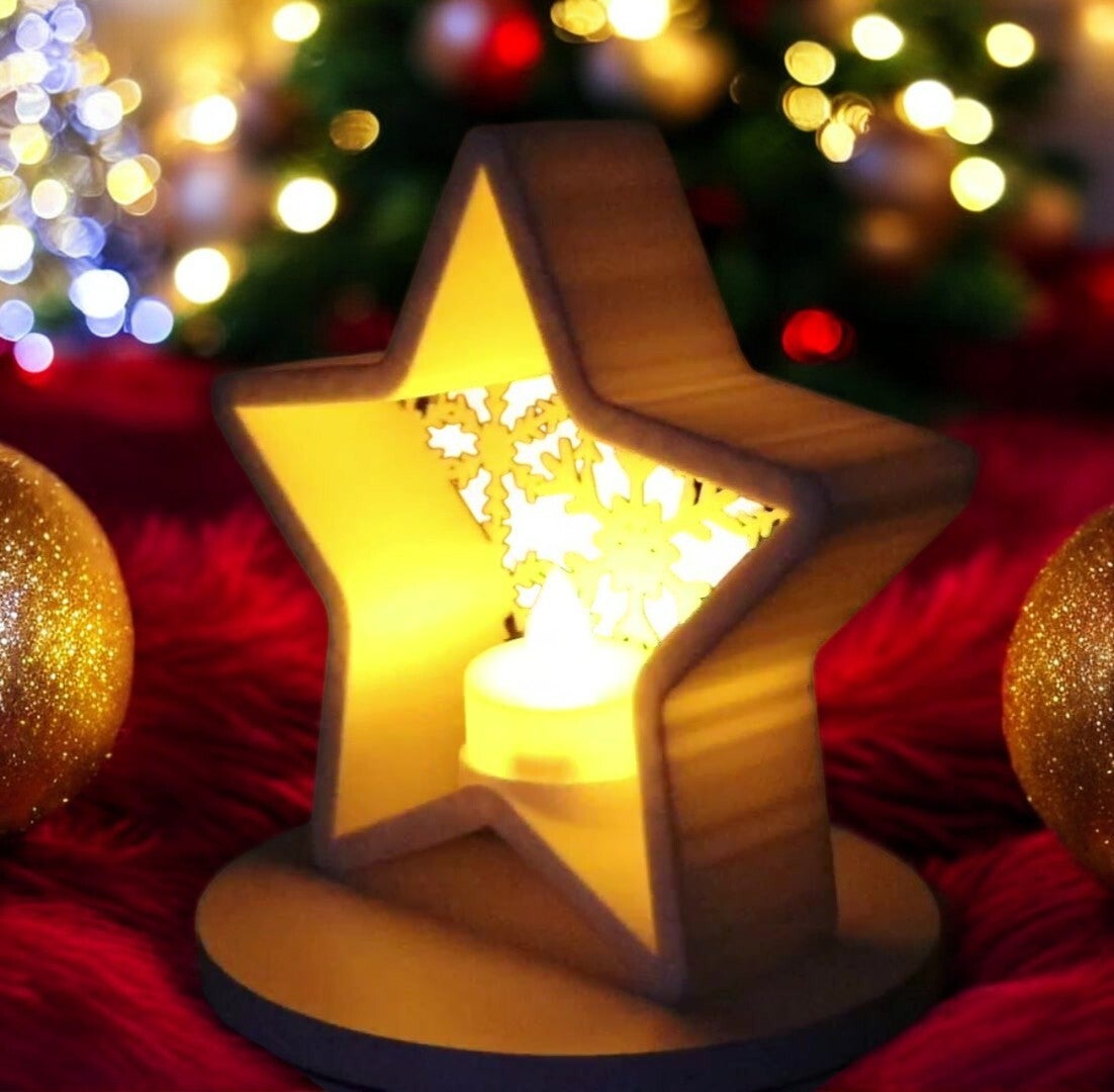 Teelichthalter Sternform im Weihnachtsdesign - Große Schneeflocke