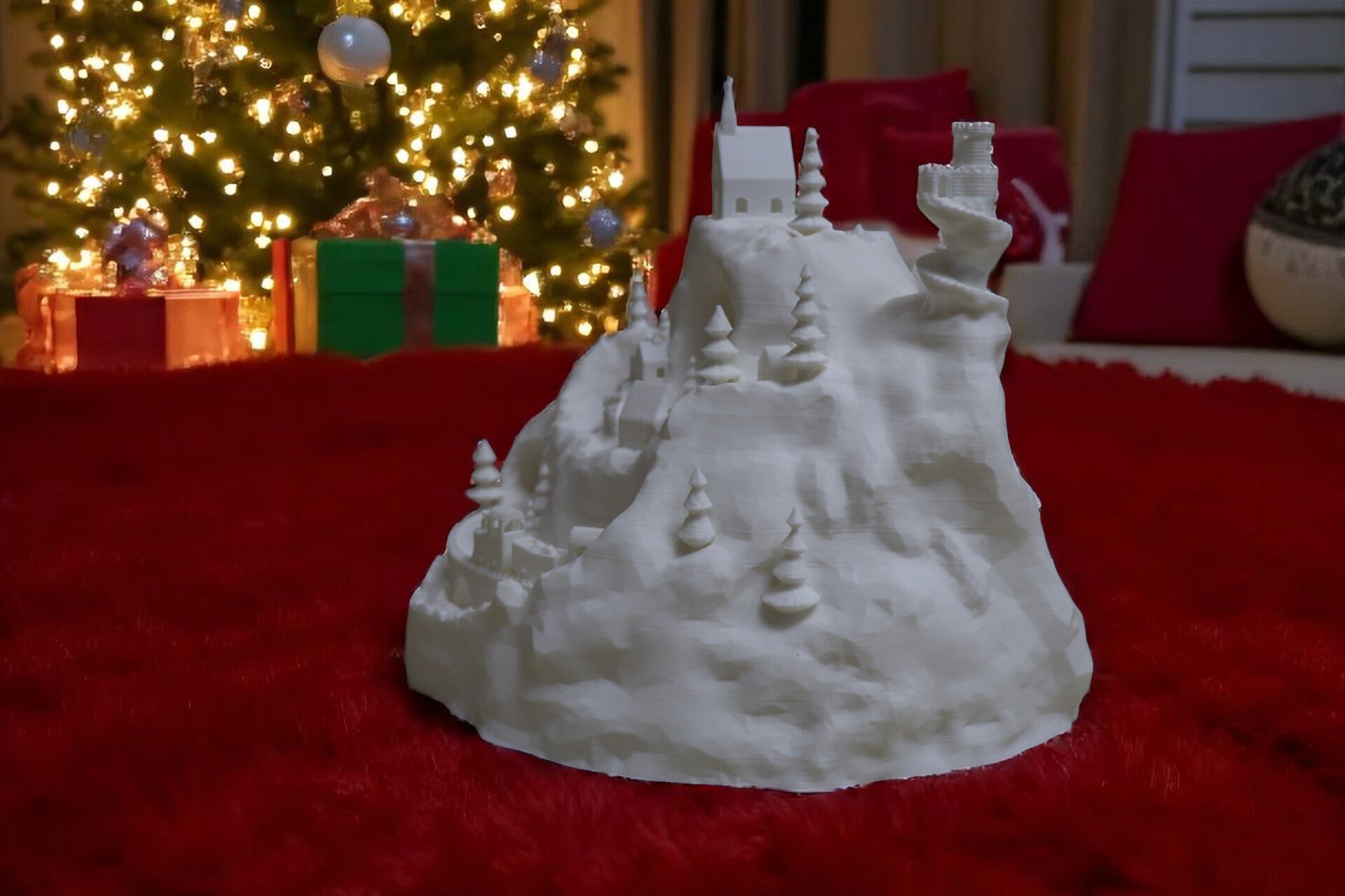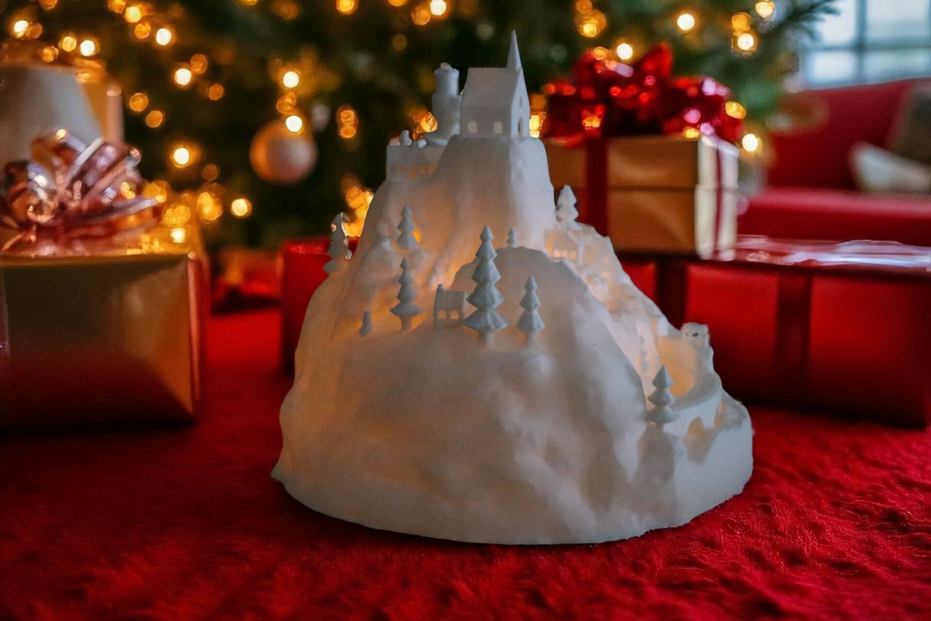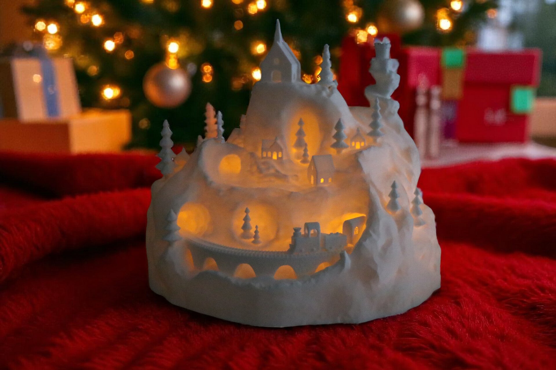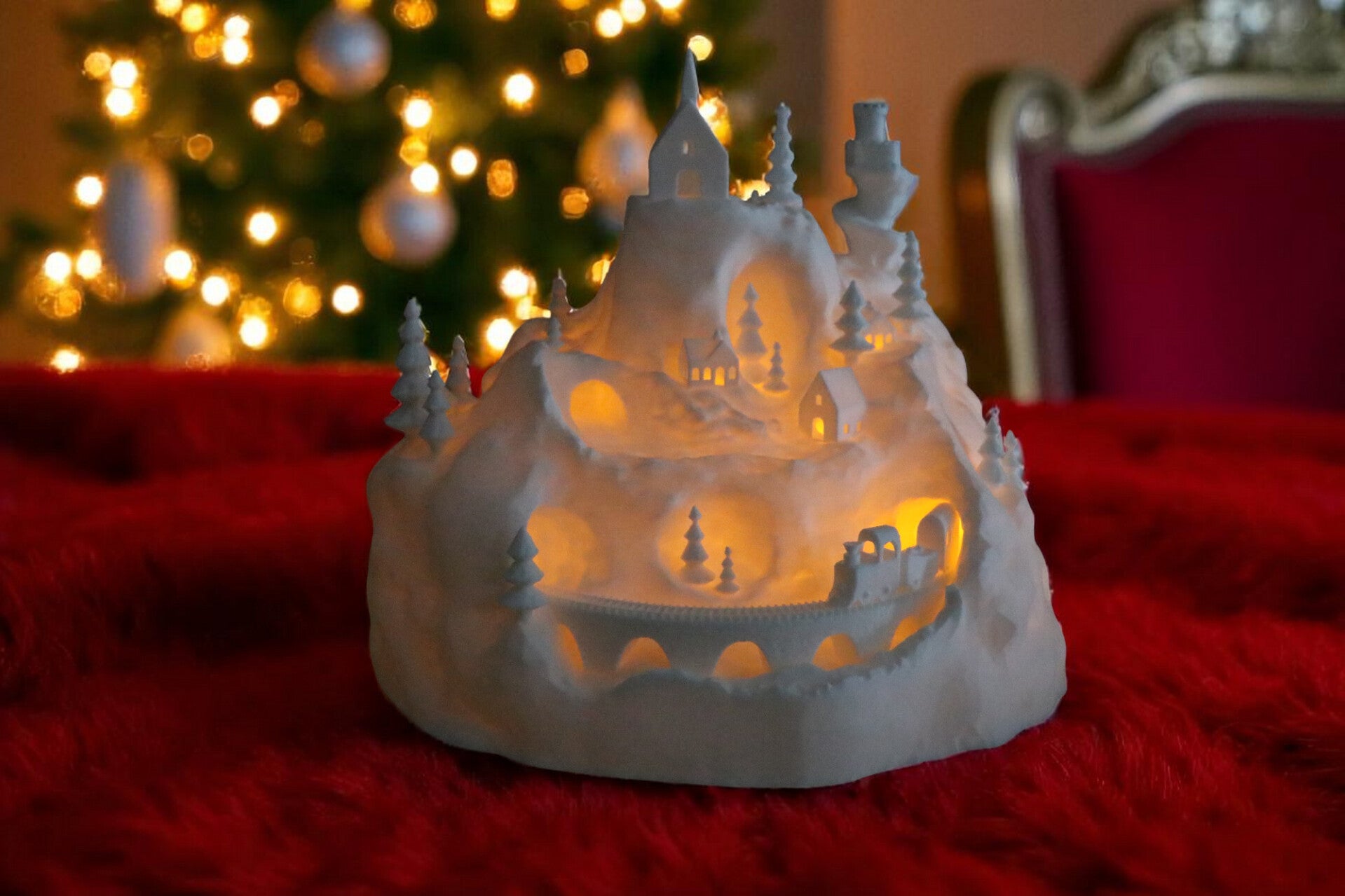 Weihnachtswinterdorf mit flackernde Teelichter warmweiss