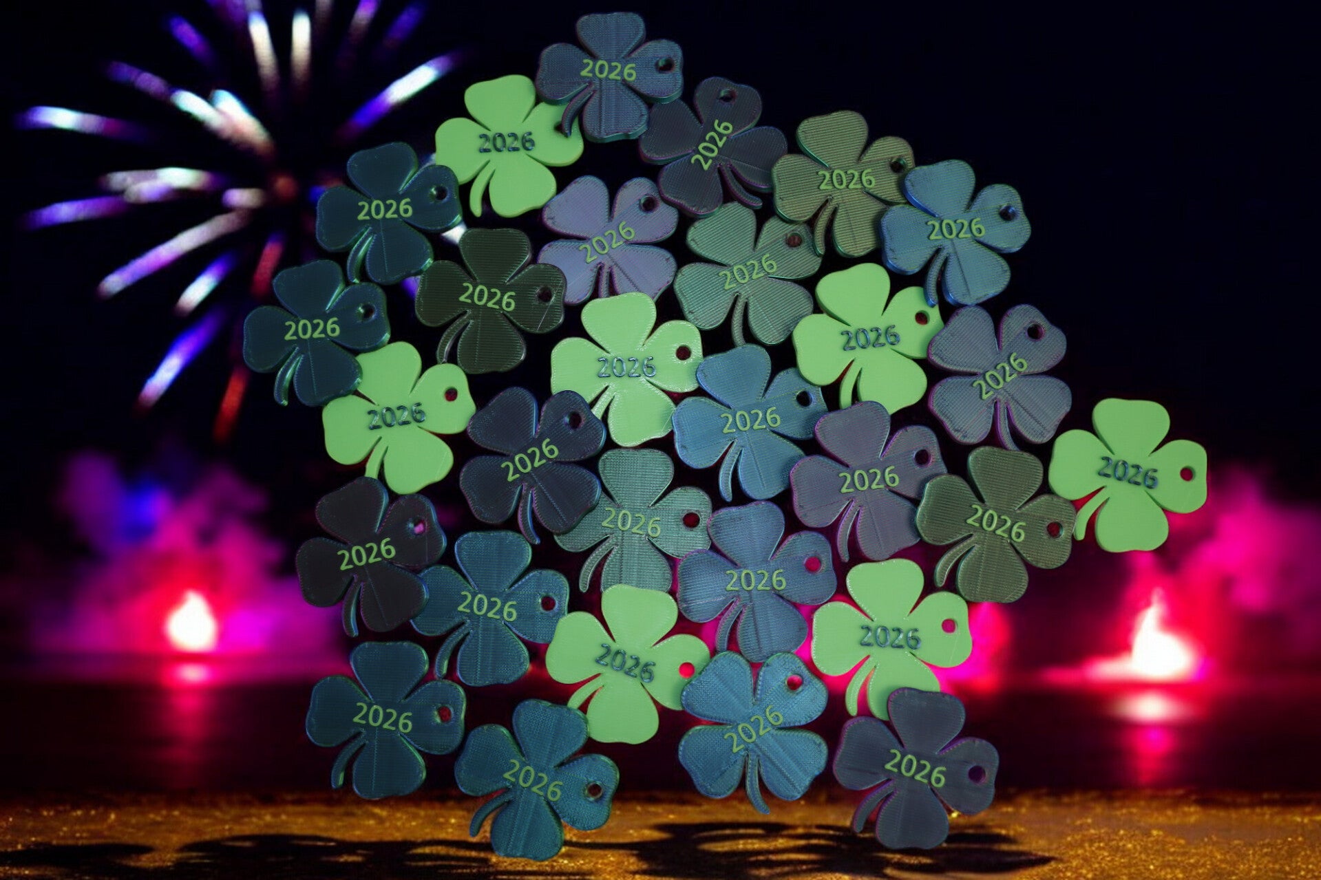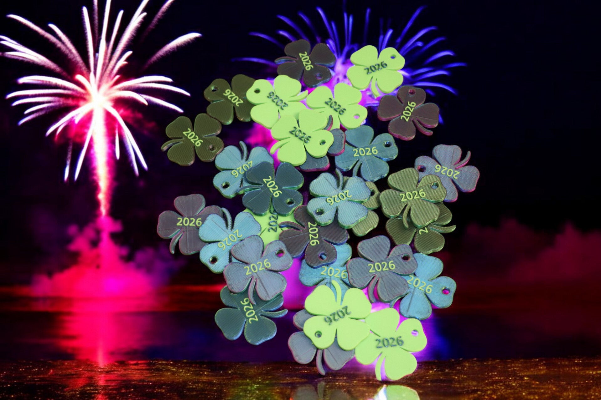 Glücksbringer Kleeblatt 2026 Schlüsselanhänger Diverse Farben - MultiColorMix